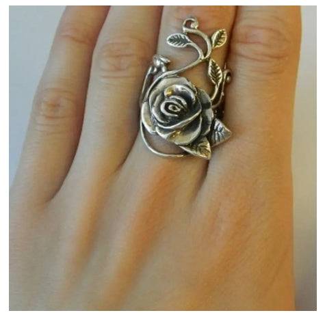 Womens Retro Rose Branch Vine Simple Statement Ring